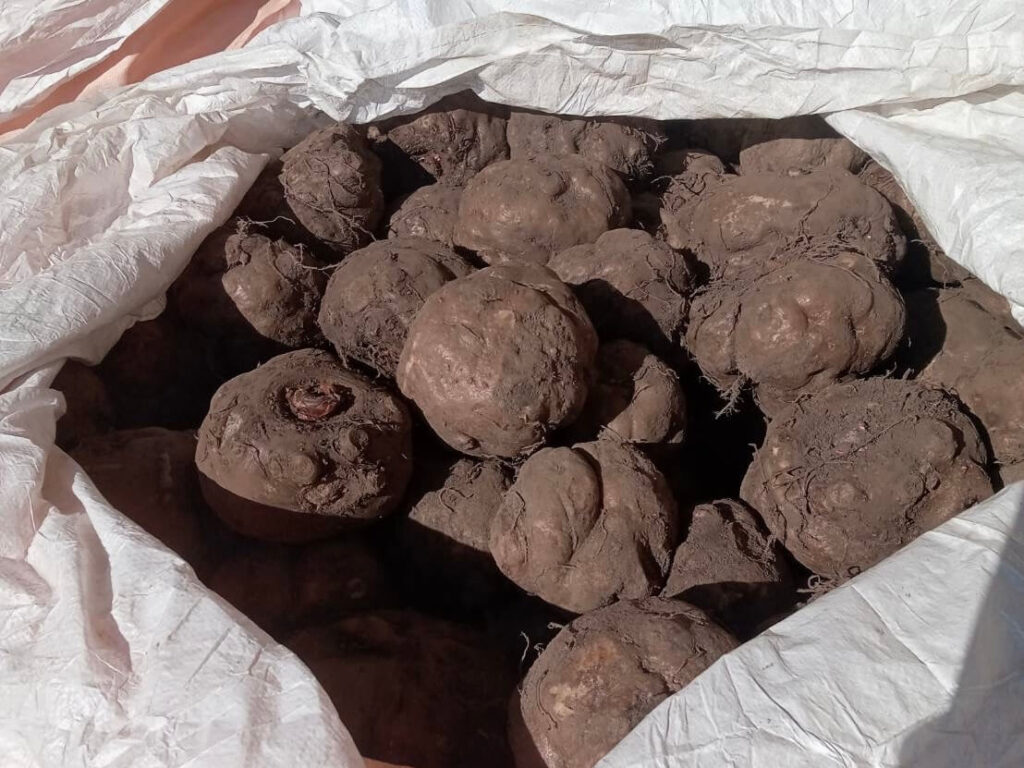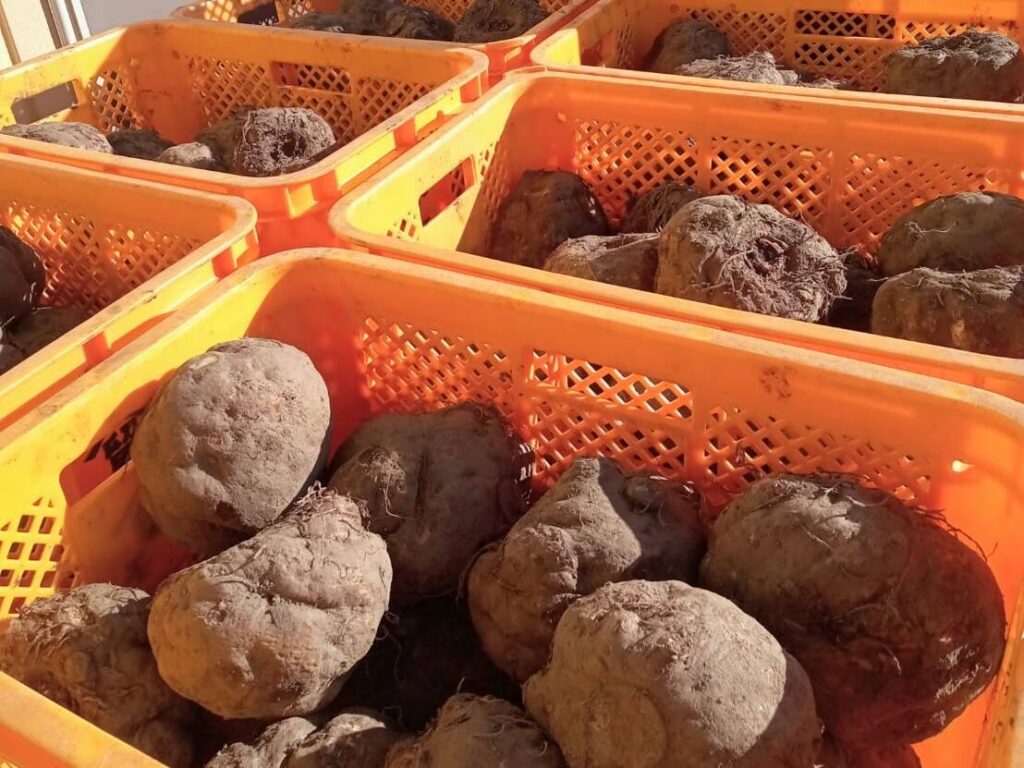 今年はこんにゃく芋が育つ時期の高温や降雨量の少なさが影響し、収穫量は減少傾向にありました。